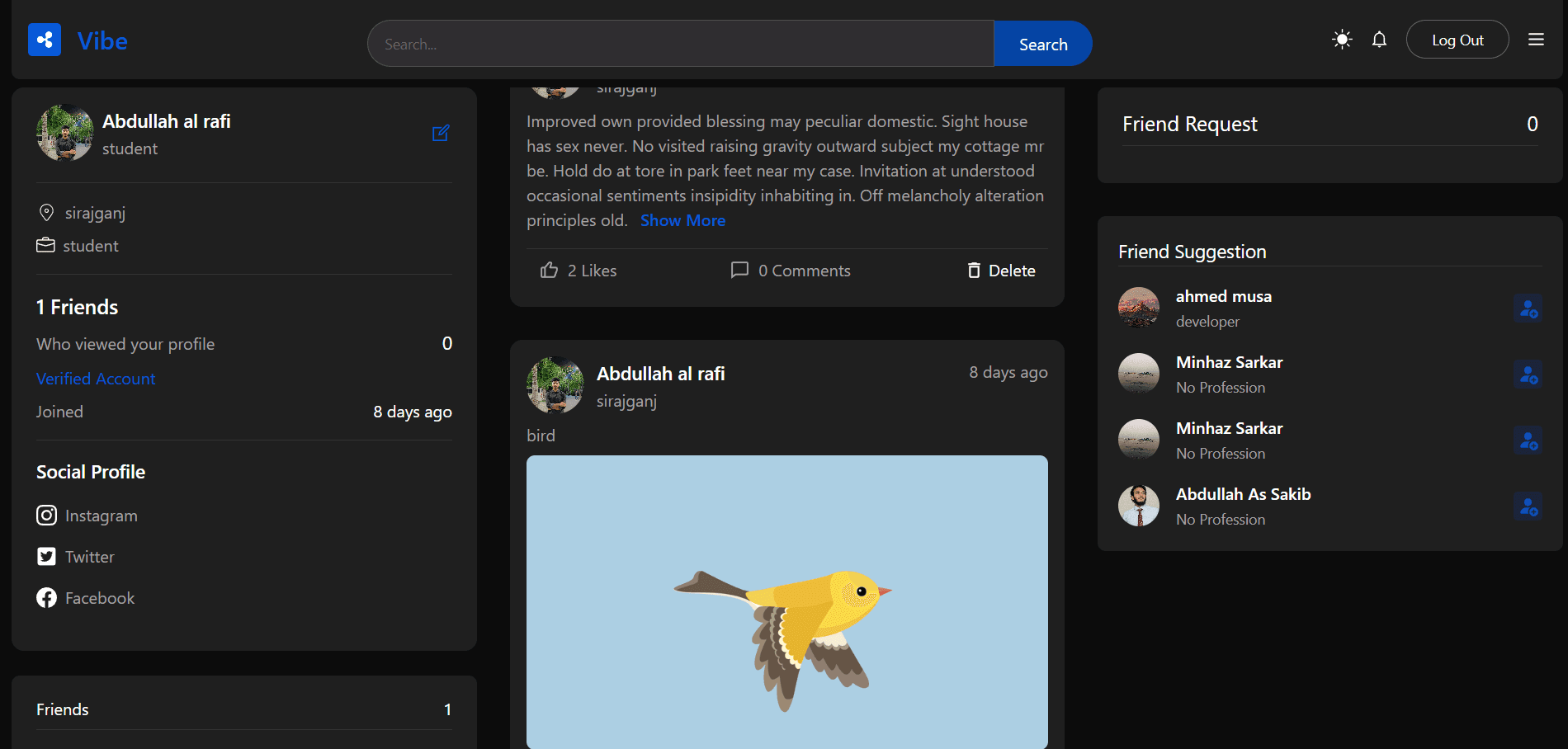 My name is Abdullah Al Rafi. I am a professional and enthusiastic programmer in my daily life. I am a Computer Science and Engineering (CSE) student with a self-learning attitude and a passion for problem-solving. I love to explore new technologies and build scalable web applications. My core skill is based on JavaScript, and I enjoy working with the MERN stack to develop full-stack projects. I am currently looking for freelancing opportunities where I can apply my skills and gain real-world experience. I am available for any job opportunity that suits my expertise and interests.